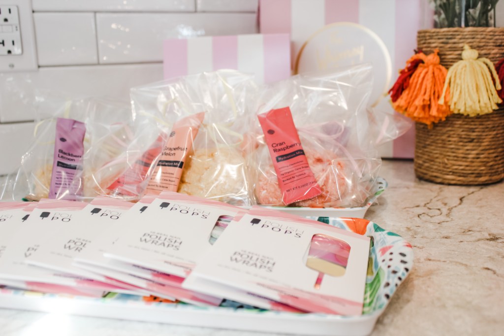 Next up we gathered around the table with food and Polish Pops. Polish Pops is also women owned (seeing a trend yet?! 😉 ) and once you see the *super* cute designs they offer you’ll quickly be adding several sets to your cart. They have the best designs I’ve found among any peel & press polish brand and they are priced so good. These are perfect for a girls’ night activity because they are easy to apply and have zero dry time. Another fact that sold me, they are cruelty free and harsh chemical free.